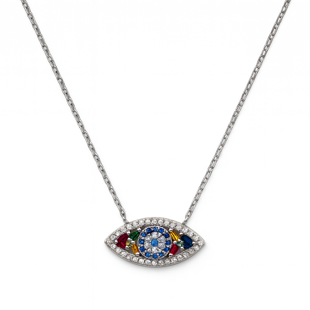 Make a vibrant statement with this captivating Sterling Silver Multicolor Evil Eye Necklace. Crafted from authentic 925 sterling silver, this eye-catching piece celebrates the protective power of the evil eye through a stunning palette of colors. Each hue represents different energies—from calming blues to energizing reds and greens—creating a dynamic accessory that reflects your multifaceted personality. This necklace transcends cultural boundaries, appealing to those who appreciate both spiritual symbolism and contemporary design. Whether worn as a personal talisman or a conversation-starting accessory, it effortlessly elevates any look. Invest in jewelry that combines artistic beauty with meaningful protection, making it an unforgettable addition to your collection.